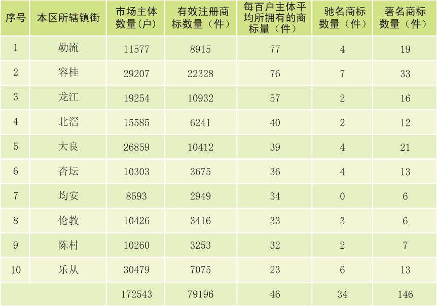 初步统计,截至2016年12月31日,本区累计有效注册商标量达79196件,在佛山五区中排名第一位。